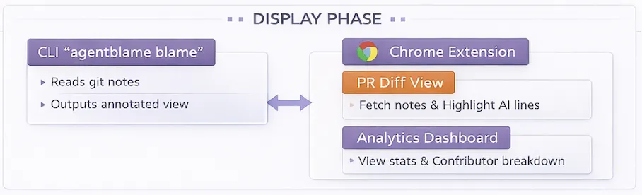 - The CLI merges git blame output with git notes attribution