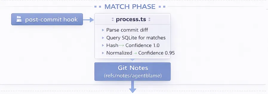 When we find a match, we write attribution to git notes for that commit: file path, line range, provider, model, and confidence.